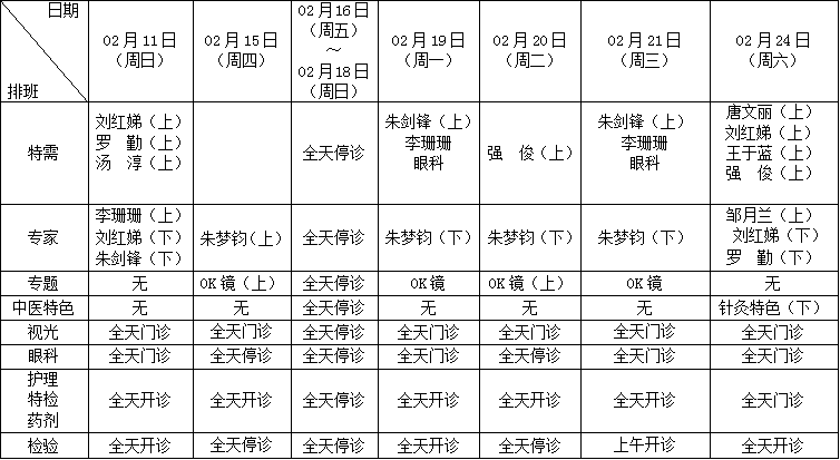 一、02月15日(三十),视光门诊全天开诊,中午连班、下午3∶40停止挂号。
