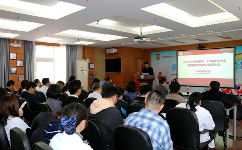 党委副书记王明进传达和解析《2018年度上海医药卫生行风建设促进会病人满意度调查报告》,并部署了中心2019年度精神文明重点工作。王明进副书记指出 ,2018年中心病人满意度较2017年有了很大提升,这得益于全体干部职工共同的付出和努力,希望大家再接再厉,不断提高主动服务意识,完善各项服务流程,给患者创造更舒适、更便利的就医环境。王书记还从班组文化建设、主动宣传行业正能量、培育打造优质医疗服务、推出文化活动等方面部署了2019年精神文明重点工作。
