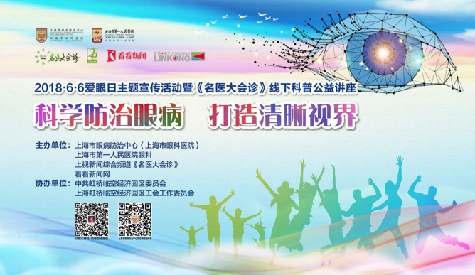 为进一步普及眼健康知识,倡导关爱眼健康,远离眼疾病,开心生活。值“6.6爱眼日”到来之际,在上海市医学会视光学专业委员会的指导下,中心拟联手上海电视台新闻综合频道《名医大会诊》、上海市虹桥临空经济园区开展主题为“科学防治眼疾病,打造清晰视界”眼健康宣教活动。活动具体事项如下: