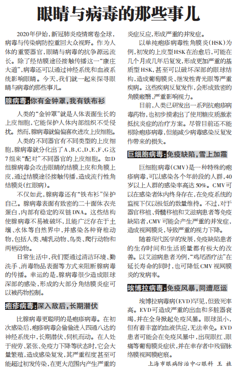《上海大众卫生报》:眼睛与病毒的那些事儿