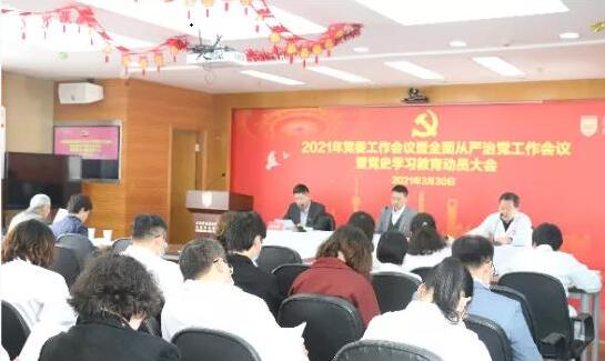 3月30日,上海市眼病防治中心2021年党委工作会议暨全面从严治党工作会议暨党史学习教育动员大会在康定路院区召开。中心党委书记、执行主任邹海东,党委副书记、纪委书记王明进,党委委员、副主任黄建南出席会议并发表讲话,各党支部委员会成员、全体中层干部、工青妇负责人、民主党派人士和职工代表参加会议。会议由中中心党委委员、副主任黄建南主持。