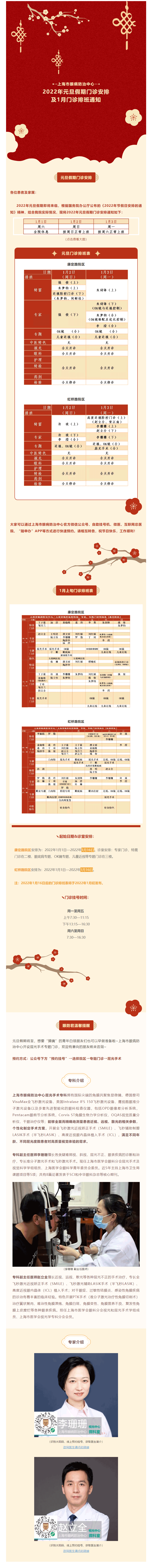 2022年元旦假期及1月门诊排班表