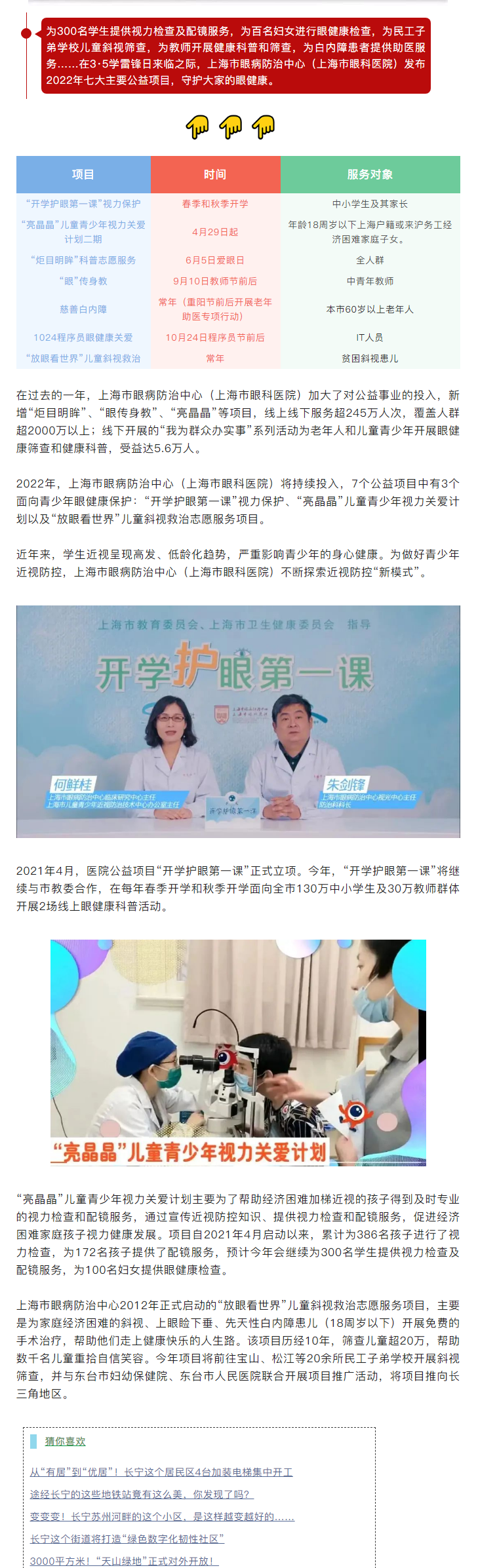 《长宁融媒体中心》:好消息!上海市眼病防治中心今年有这些“公益项目”