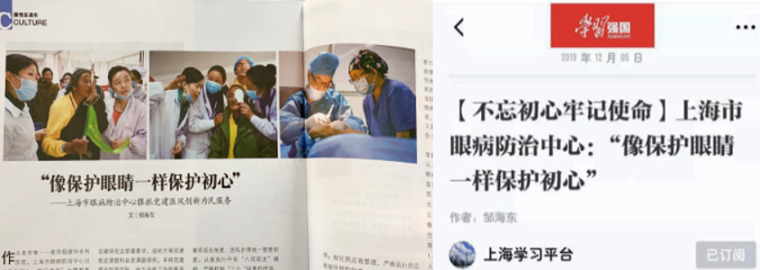 各党建研究课题均形成研究论文,其中《像保护眼睛一样保护初心》一文已发表在《倡廉文摘》(2019年12月刊)和 “学习强国”上海学习平台上。