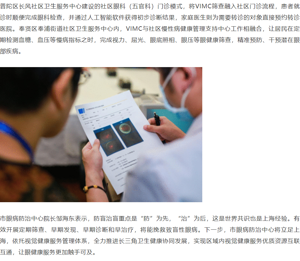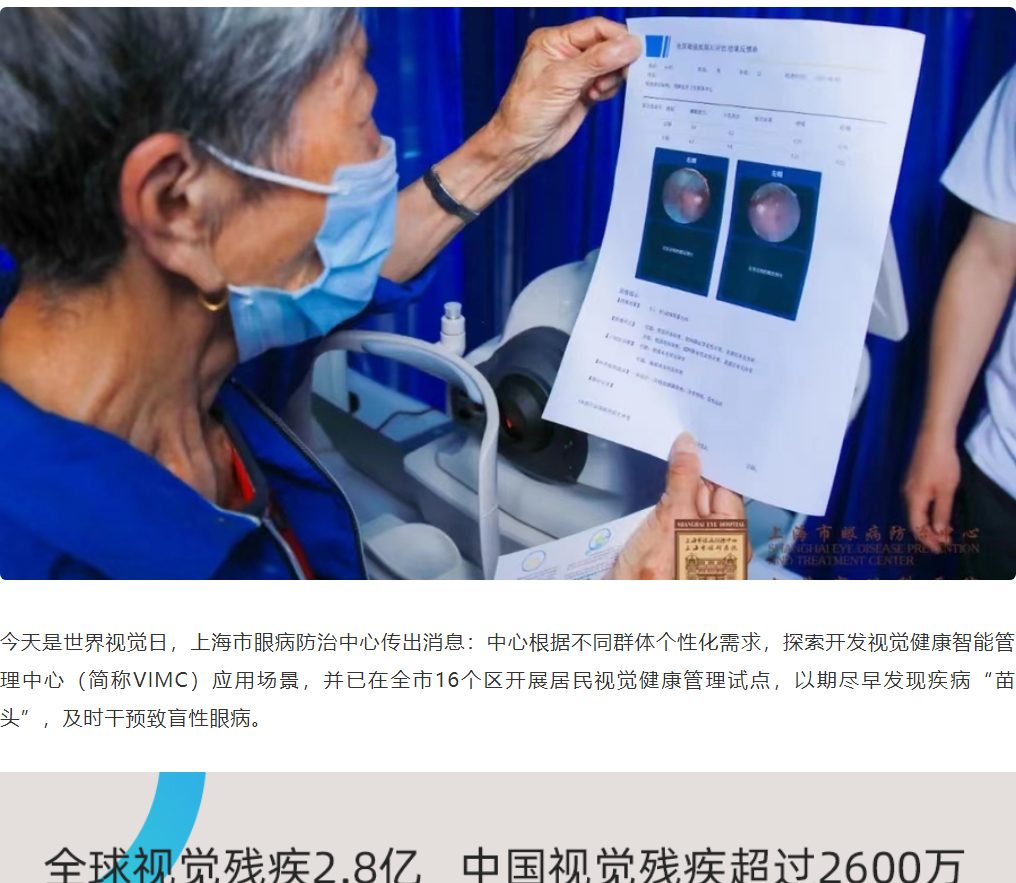 《上观新闻》:我国每年致盲人数45万人,市眼病防治中心在社区开展视觉健康管理试点