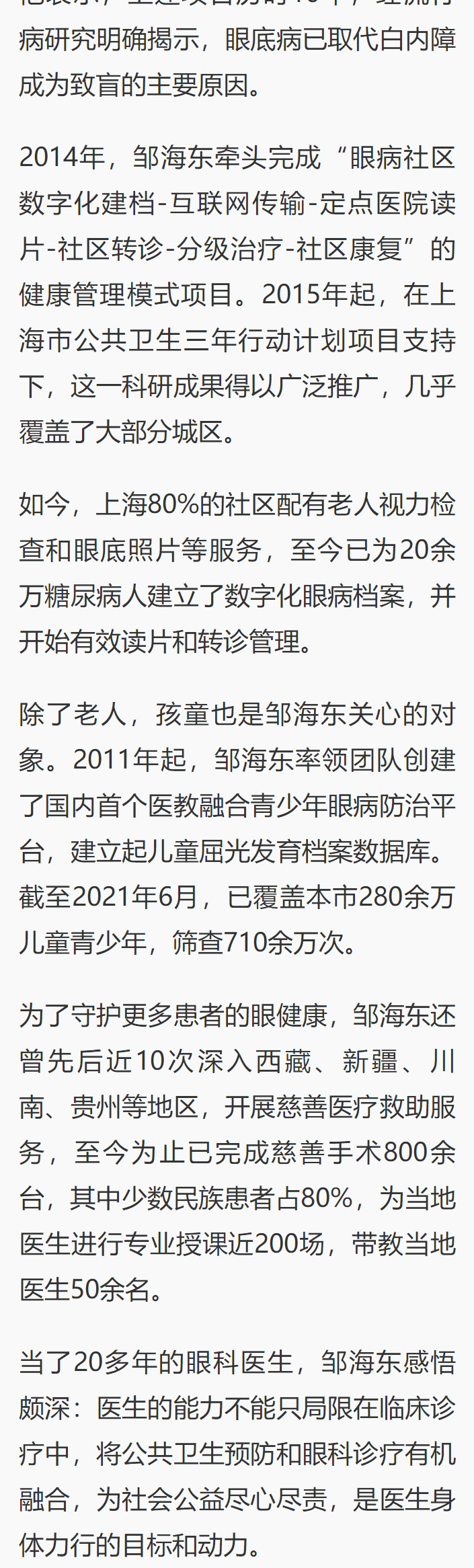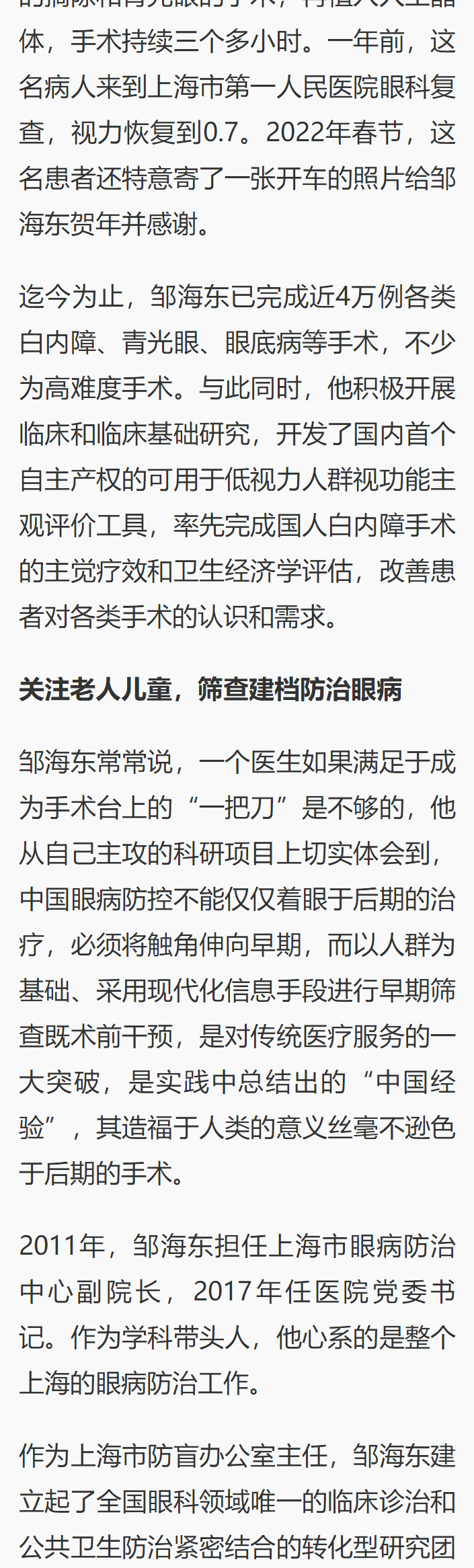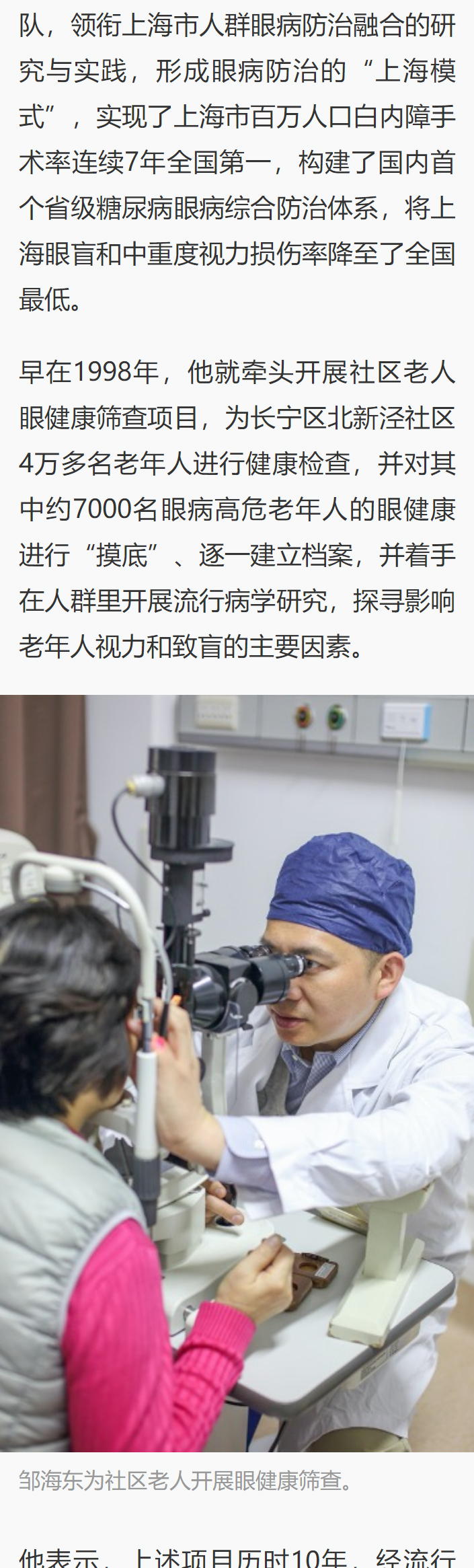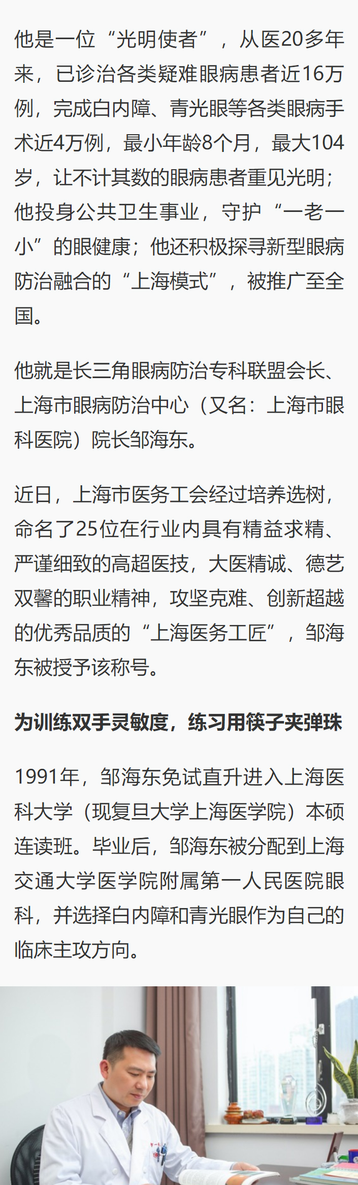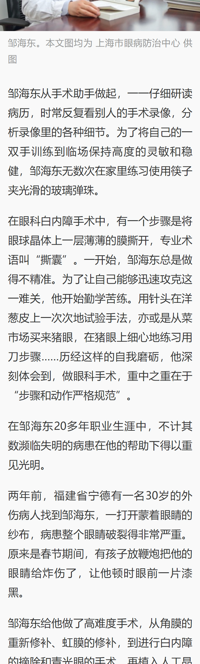 《澎湃新闻》:“追光者”邹海东:完成近4万例眼病手术,建立儿童屈光发育数据库