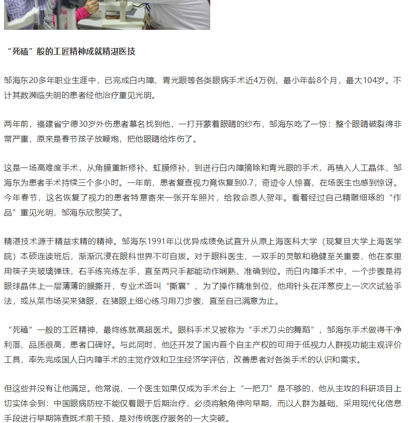 《上观新闻》:无数次练习用筷子夹玻璃弹珠,秉持精益求精成就这位“上海医务工匠”