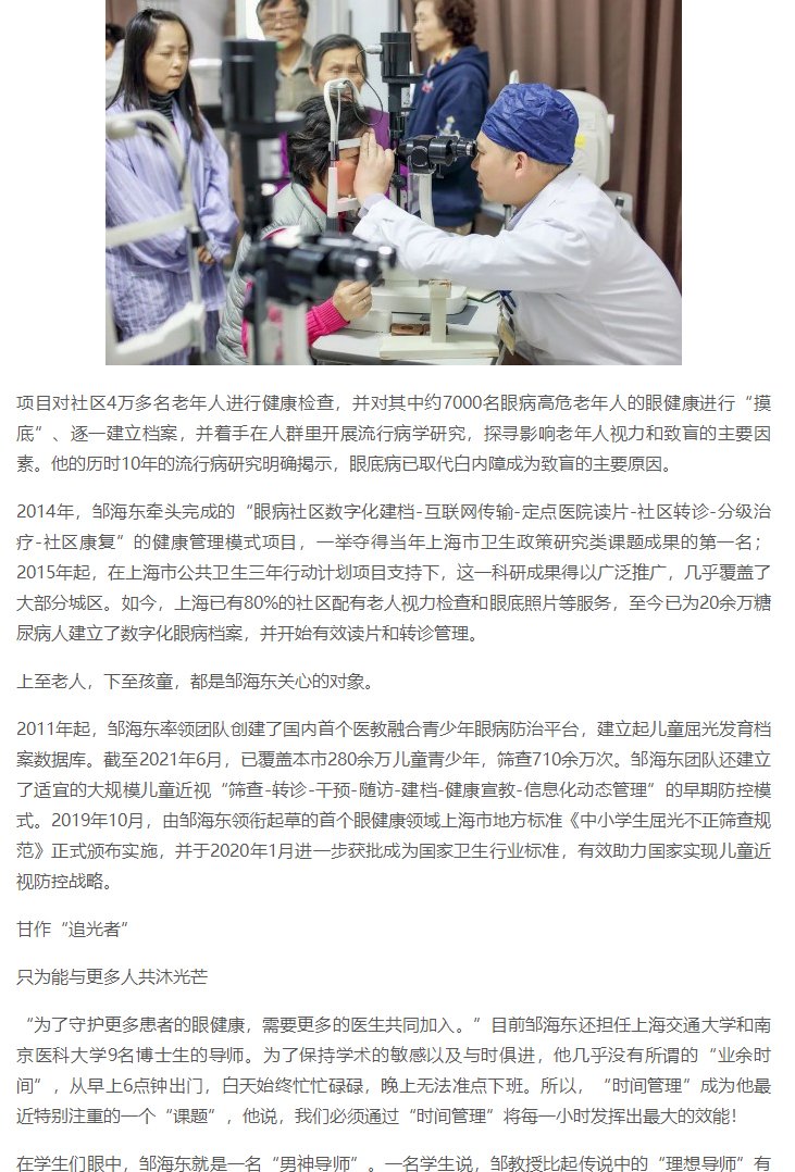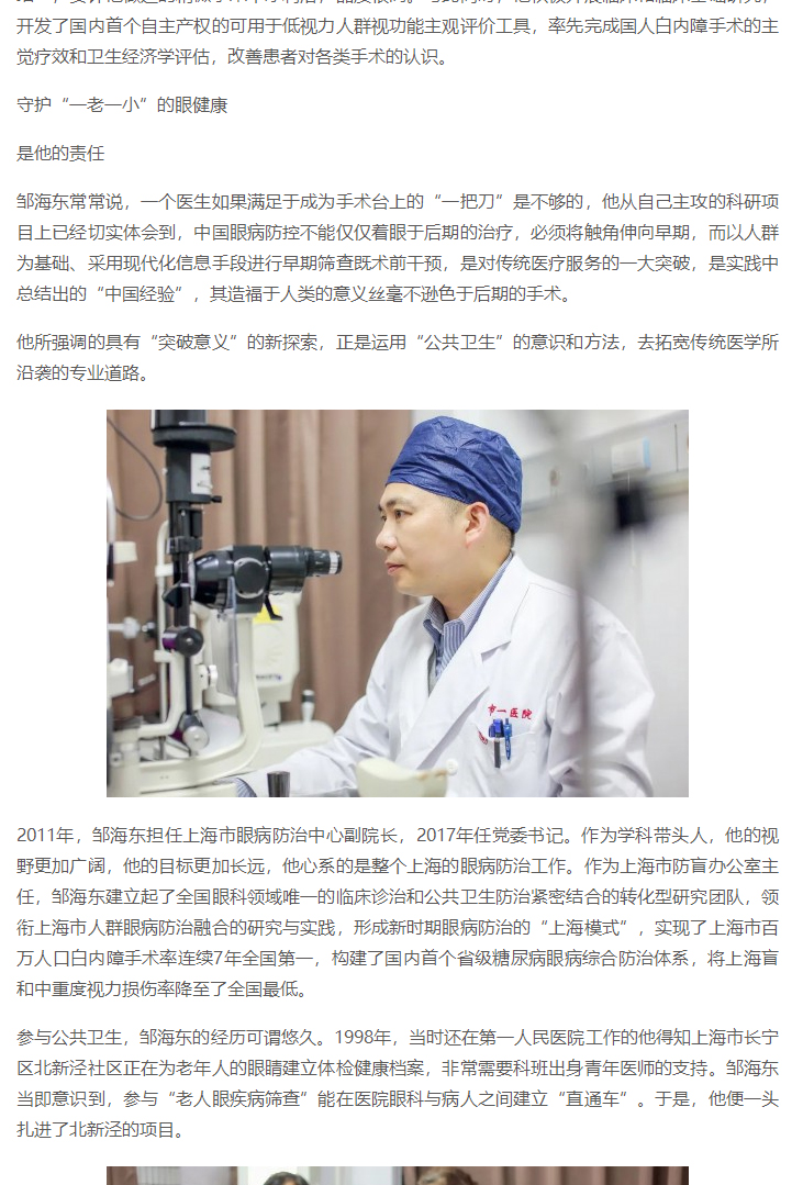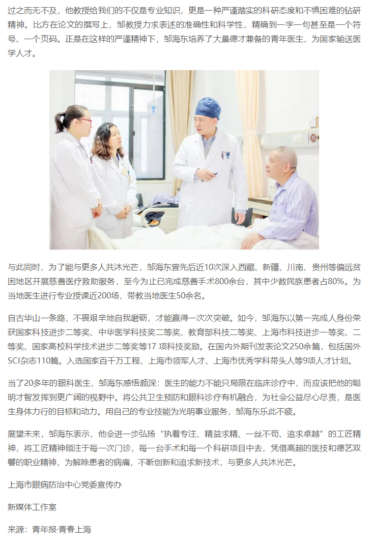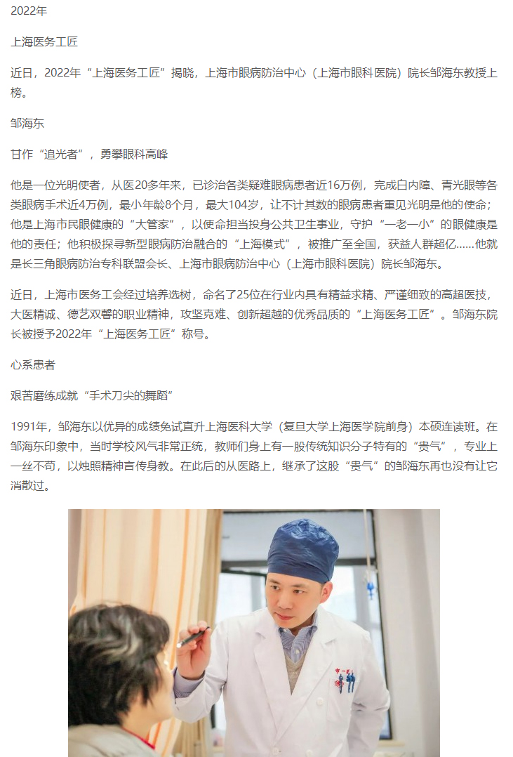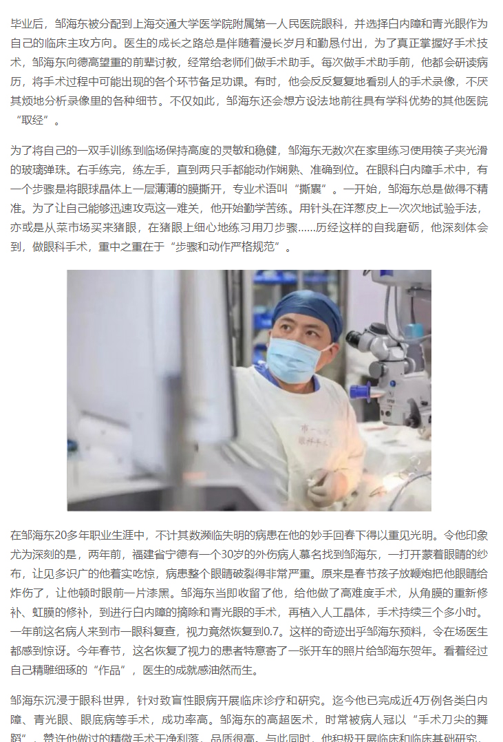 《东方新闻》:2022年“上海医务工匠”邹海东:甘作“追光者”,勇攀眼科高峰