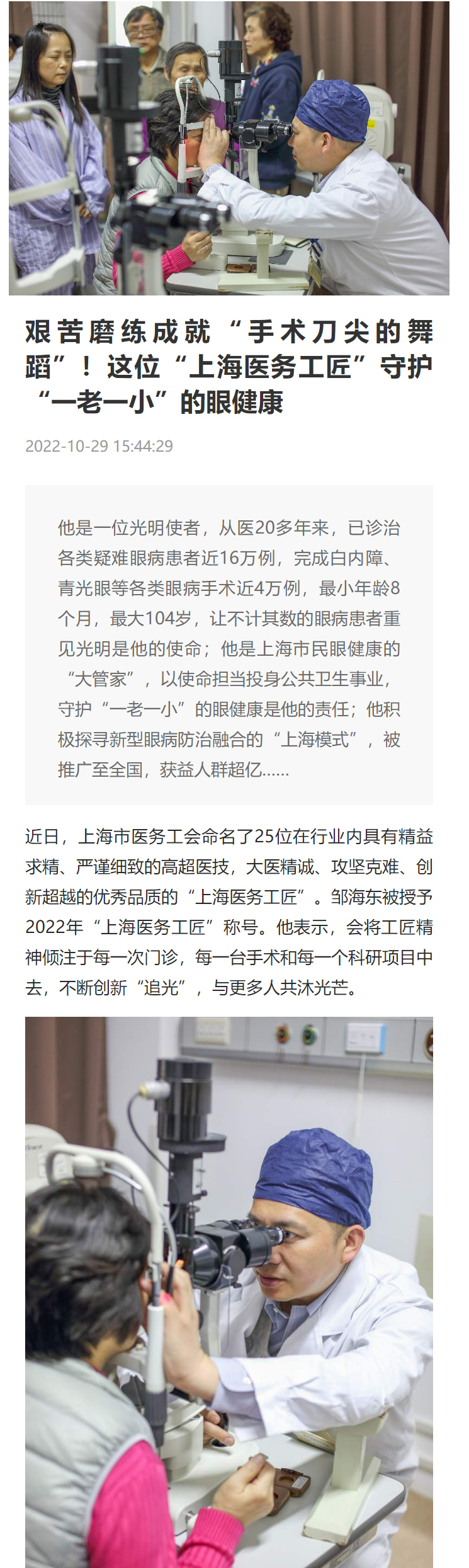 《周到上海》:艰苦磨练成就“手术刀尖的舞蹈”!这位“上海医务工匠”守护“一老一小”的眼健康