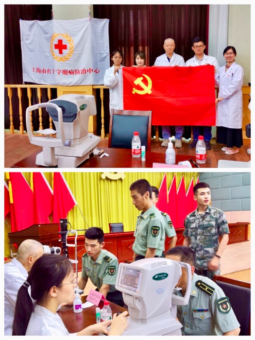 2019年7月17日下午,在“八一”建军节到来之际,上海市眼病防治中心积极响应静安区江宁路街道双拥活动安排,组织医务人员前往上海市警备司令部开展眼健康咨询活动。活动为司令部官兵提供了裸眼视力检查、验光矫正视力检测、眼底检测、健康用眼咨询等服务,让军人们体验到了温馨的眼健康公益服务。