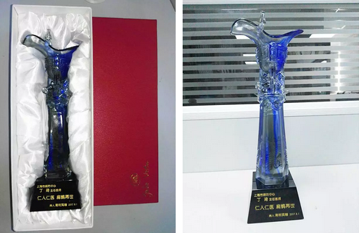 8月3日,患者(家属)蒋女士赠送“仁人仁医,扁鹊再世”玻璃奖杯表扬眼科丁琦医生。