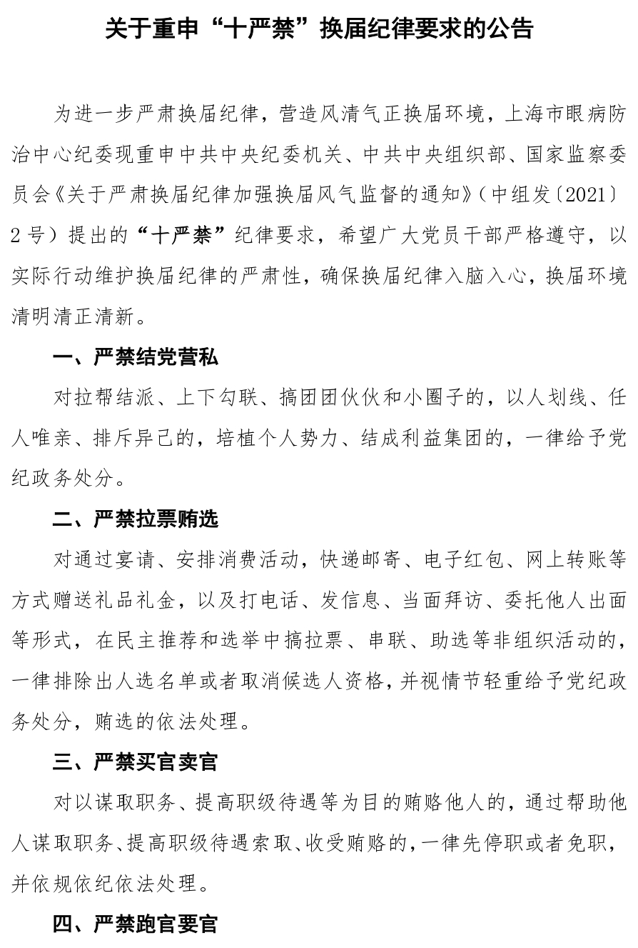 关于重申“十严禁”换届纪律要求的公告
