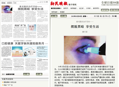 今年3月8日至14日是第八届世界青光眼周。由于近年来青光眼知识广泛普及,大众对青光眼这个致盲的眼病已经有了初步的认识,对青光眼的分类及治疗也有了一定的了解。但是,当确诊为青光眼后,患者流露出悲伤、痛苦的情绪,仍旧难免,甚至害怕和绝望。他们不能接受这一事实,担心不久的将来双眼会失明。由于一直过分忧虑而不能调节自己的情绪,以致其他严重的身心疾病。调查还发现,不少青光眼患者的性格偏内向,经常伴焦虑、抑郁,甚至有强迫症的倾向。毫不夸张地说:一个人患了青光眼,全家人情绪都可能受到连累,也影响了家庭的和谐。