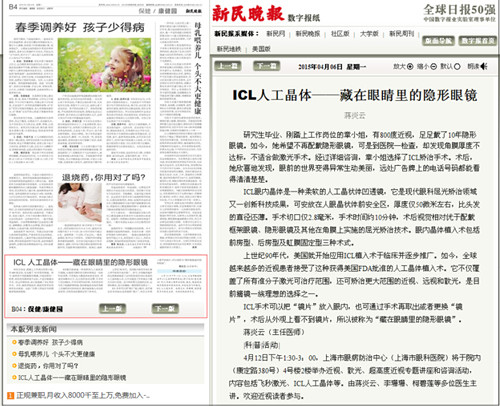 《新民晚报》——近视眼病专家讲师团科普讲座开始了