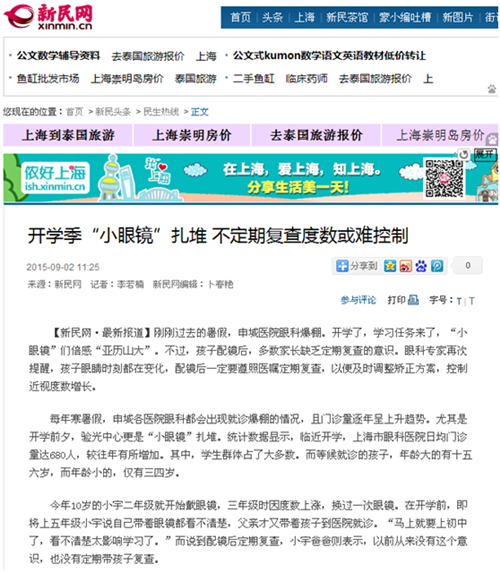 【新民网】小眼镜扎堆 不定期复查度数或难控制