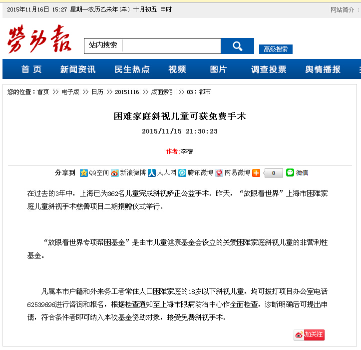 - 看看新闻:《医聊帮你忙》:上海市眼病防治中心门诊号源实行全部对外开放