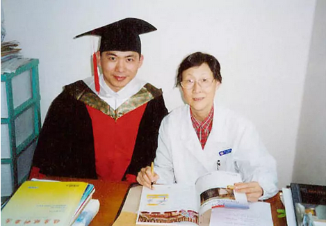 邹海东戴上博士帽的那天,与导师张皙教授的合影
