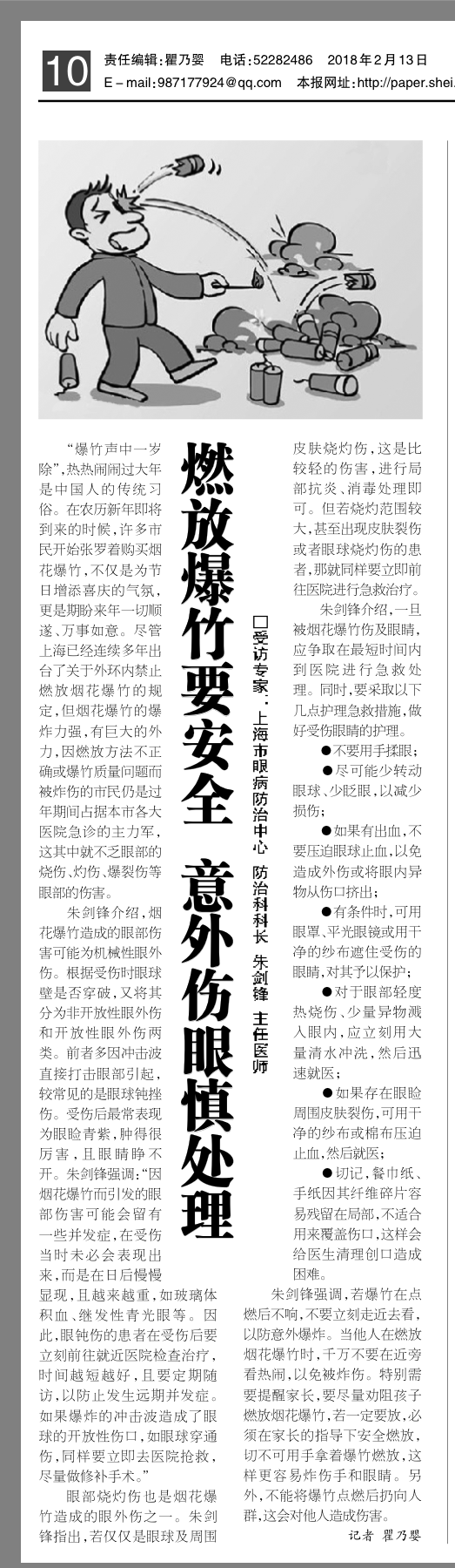 《上海大众卫生报》:燃放爆竹要安全,意外伤眼慎处理