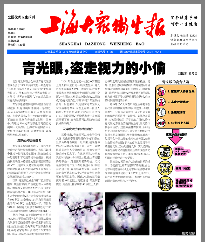 《上海大众卫生报》:青光眼,盗走视力的小偷