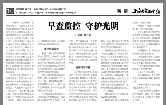 《上海大众卫生报》:早查监控,守护光明