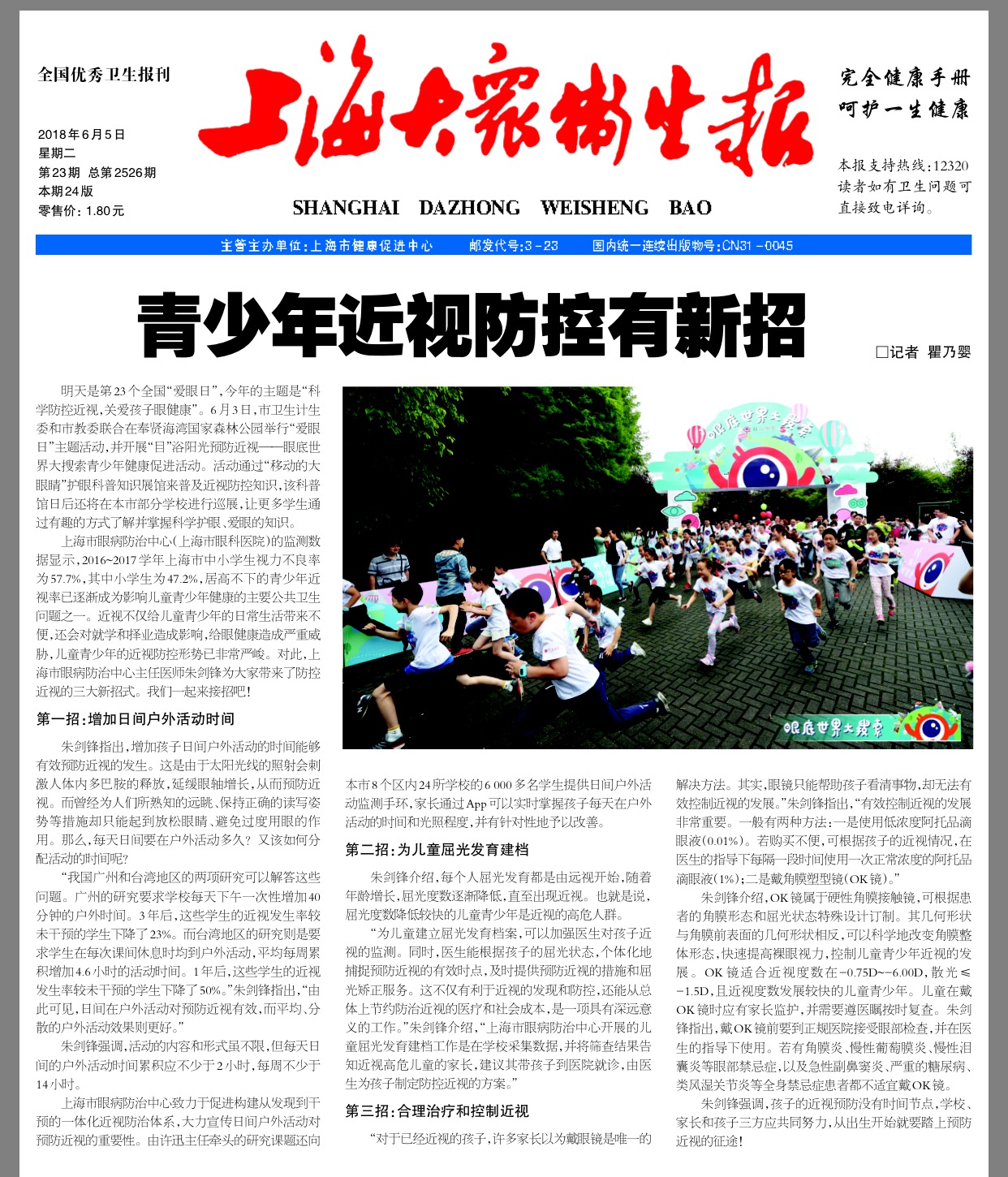 《上海大众卫生报》:青少年近视防控新招