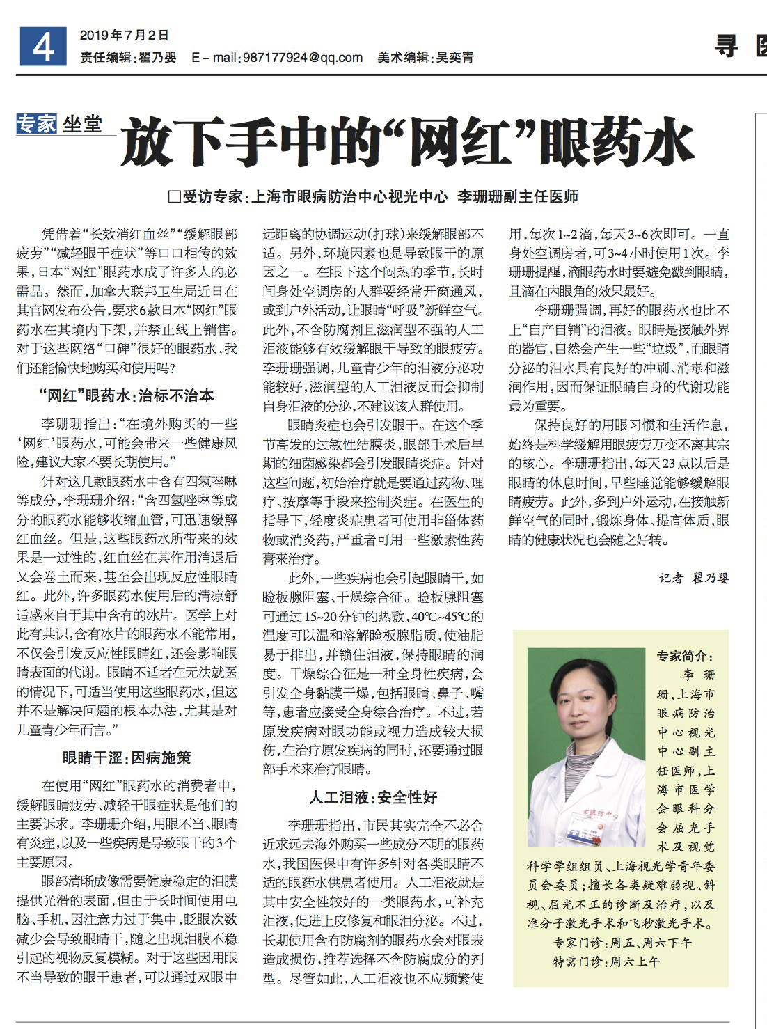 《上海大众卫生报》:放下手中的“网红”眼药水