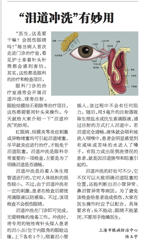 《上海大众卫生报》:泪道冲洗有妙用