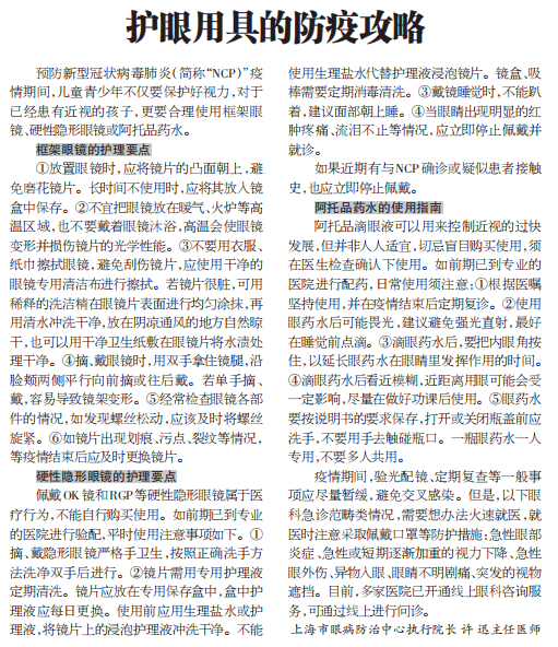 《上海大众卫生报》:护眼用具的防疫攻略