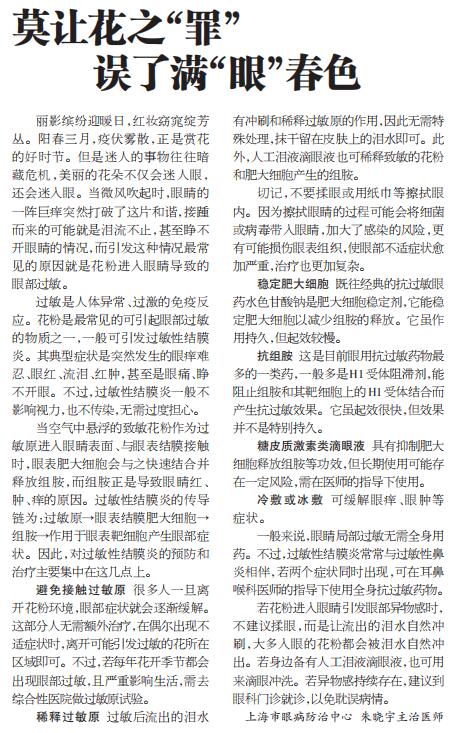 《上海大众卫生报》:莫让花之“罪”,误了满“眼”春色。