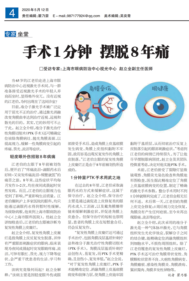 《上海大众卫生报》:手术1分钟,摆脱八年痛