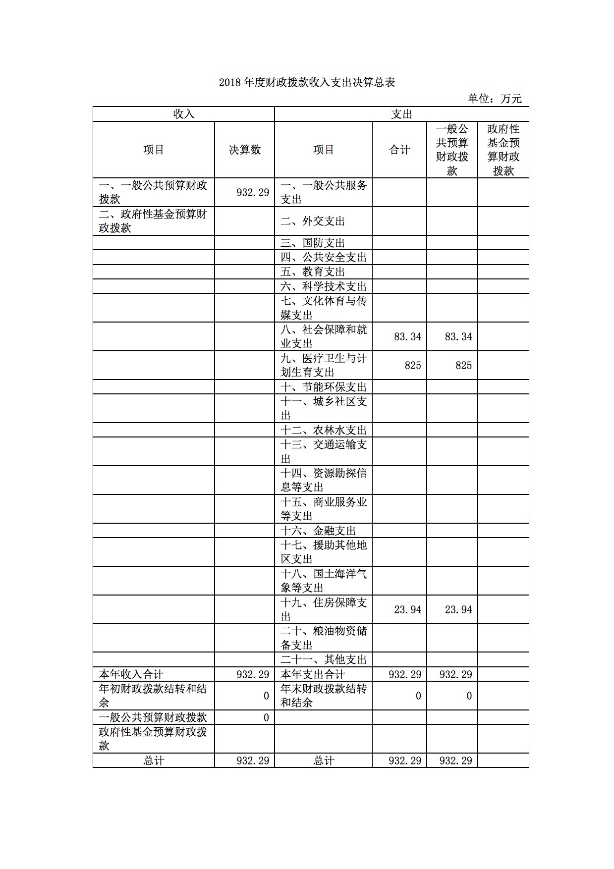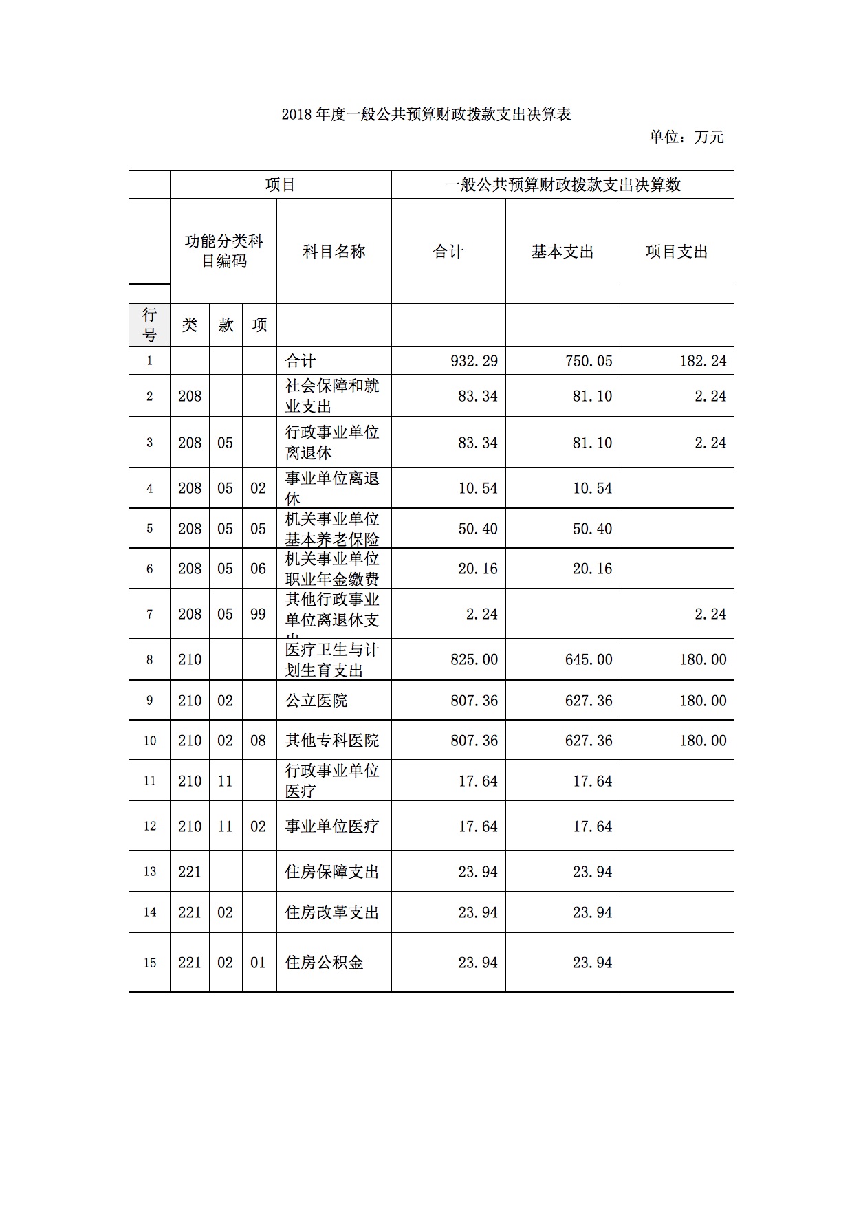 (三)一般公共预算财政拨款支出决算具体情况
