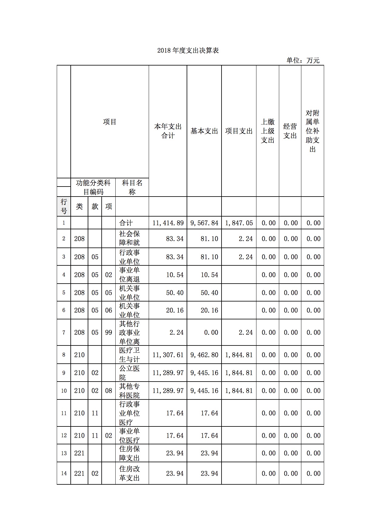 本年支出合计11,414.89万元,其中:基本支出9,567.84万元,占83.82%;项目支出1,847.05万元,占16.18%。