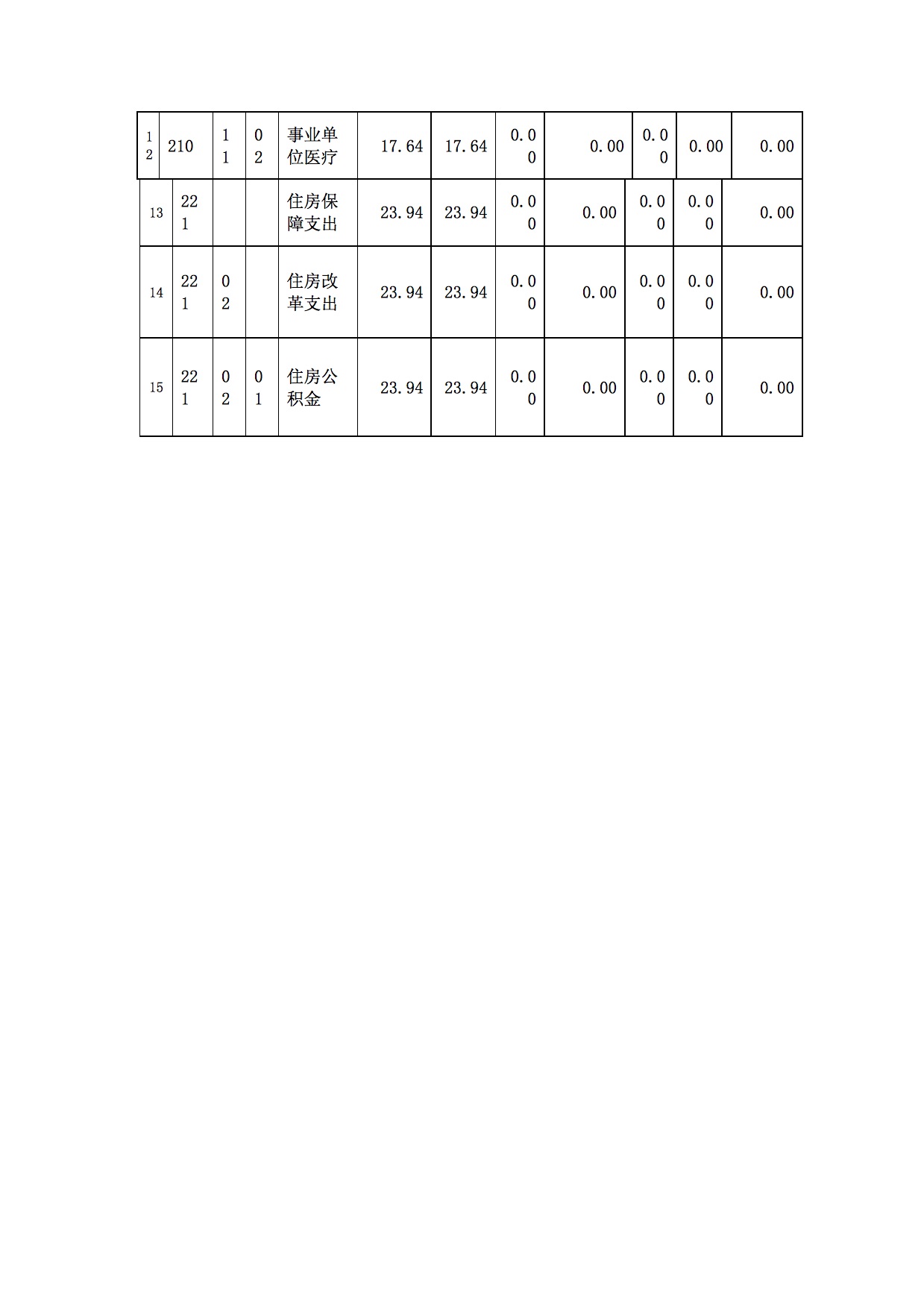 6、住房保障支出(类)住房改革支出(款)住房公积金(项):年初预算为23.94万元,支出决算为23.94万元。