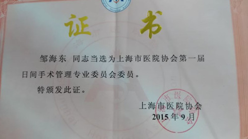 最近,我院邹海东书记、常务副主任被聘为上海市医院协会第一届日间手术管理专业委员会委员,这与我院眼科日间手术的蓬勃开展密不可分。