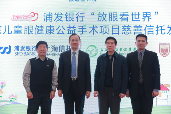 “放眼看世界”儿童斜视公益慈善手术项目于2012年正式启动以来,备受社会各界的广泛关注和支持。本慈善信托由浦发银行作为委托人出资,上海信托担任受托人。信托财产定向捐赠用于“上海市困难家庭眼疾儿童免费手术公益慈善项目”,用于帮助困难家庭眼疾儿童免费实施手术治疗,提高双眼视功能,促进儿童身心健康发展。信托受益人为困难家庭符合手术指征的斜视、上眼睑下垂及先天性白内障儿童。