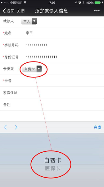 3、卡类型如果使用医保卡请在“卡类型”处选择“医保卡”;如无医保卡或不打算用医保卡者可选择“自费卡”;