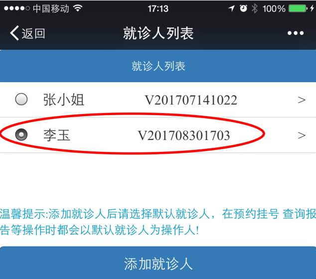 点击确认添加,表示已成功添加就诊人信息。如还继续添加,可点击“添加就诊人”继续按照以上流程进行添加。