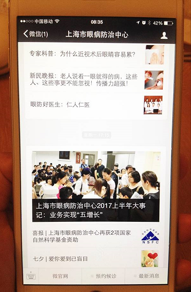 除此之外,如何快速了解上海市眼病防治中心更多新闻动态及获得更多眼健康知识,关注中心微信公众号也是最有效和最快的途径。公众号每月会不定期传播中心各种新闻动态、院内信息及节假日门诊排班信息等,还有最具权威的眼健康科普知识,让您一键获得多重信息。