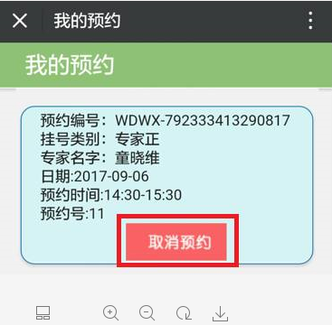 预约完成后可看到预约具体信息,如需取消可点击“取消预约”