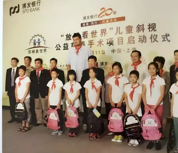 2012年,上海市眼病防治中心联手上海市儿童健康基金会、上海浦东发展银行、上海国际信托有限公司发起“放眼看世界”儿童斜视公益慈善手术项目。旨在通过设立专项帮困基金,帮助家庭经济困难的斜视儿童(18周岁以下)开展免费的斜视手术,帮助他们走上健康快乐的人生路。项目启动时,篮球巨星姚明亲自担任项目代言人。和受益儿童站在一起,满满都是爱~