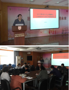首先,中心党委副书记王明进为大家进行了《学习贯彻十九大精神之正确理解新时代全面从严治党的内涵》专题党课授课。王明进副书记高屋建瓴、理论结合实际、旁征博引、深入浅出地为大家进行解读,使大家对新时代全面从严治党的重要性、内容、措施以及远期意义有了更深刻的理解和认识,这是支部进行轮流授课展示的首次尝试,受到支部成员的欢迎。