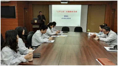 12月3日下午,中心党总支组织了三严三实专题教育党课辅导,由邹海东书记主讲。全体中层以上干部和党支部书记参加了听课。